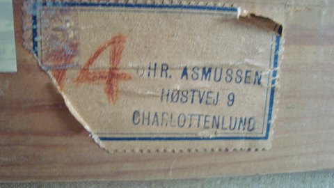 Bagpå mærkat - Chr. Asmussen, Hostvej 9, Charlottenlund.