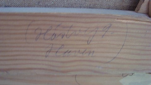 Bagpå blindramme skrevet med bly - Haven, Høstvej 9.