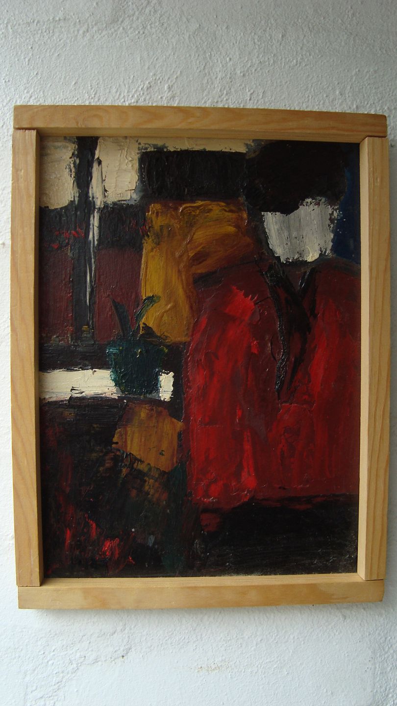 Maleri af Peder Brøndum Sørensen - Person ved vindueskarm med kaktus.
