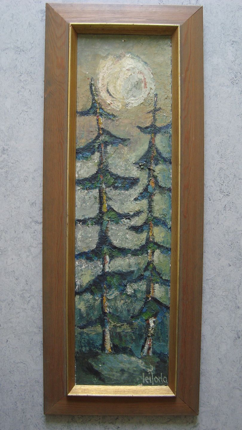 Maleri af Leif Orla Nielsen - Graner ved solnedgang.