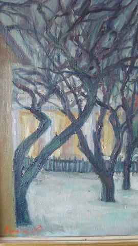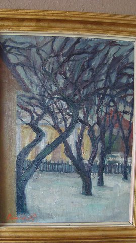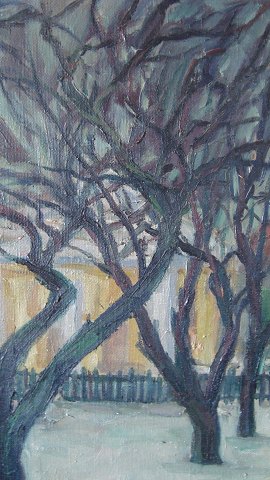 Maleri af Ewald Petersen - Vinterparti med nøgne træer.