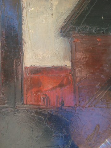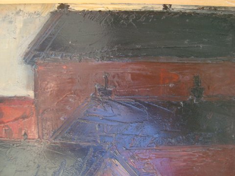 Maleri af Peder Brøndum Sørensen - Mørke Huse - skitse 1965.