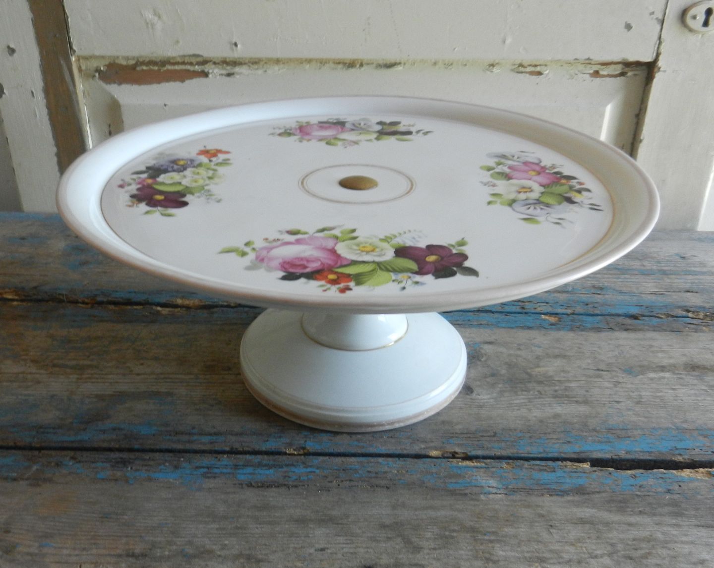 Stor 1800tals kageopsats med håndmalet blomster dekoration