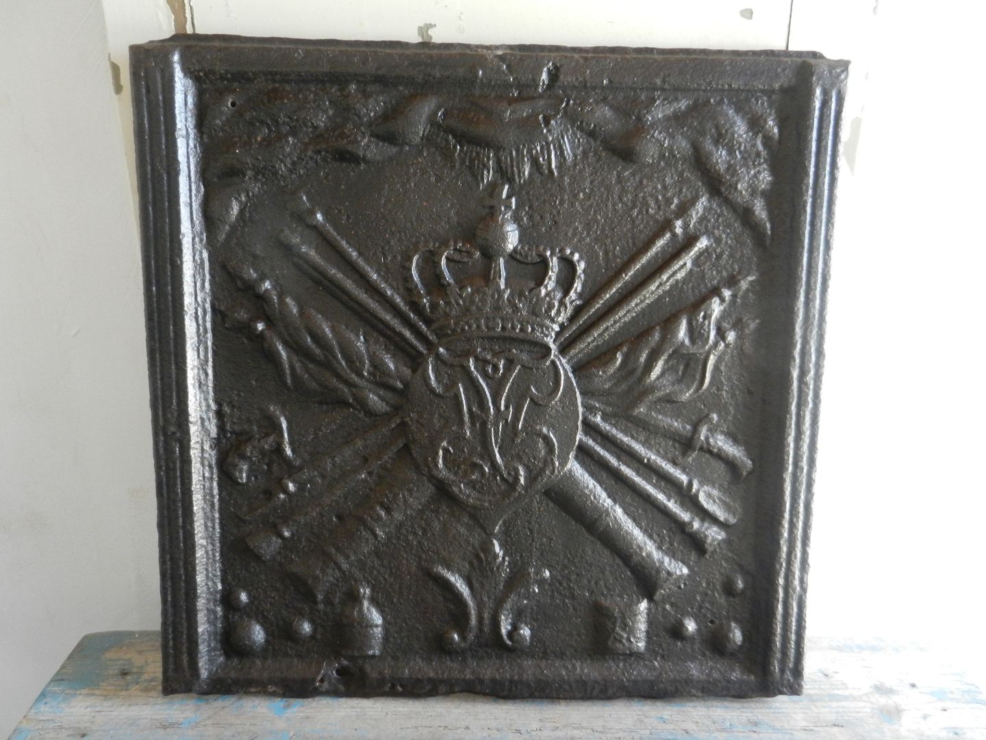 1600tals bilæggerovnplade med monogram og kongekrone, meget flot stand.
