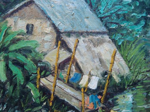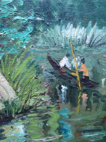 Maleri af Kai Heide Zorn 1968 - Flodparti fra Thailand.