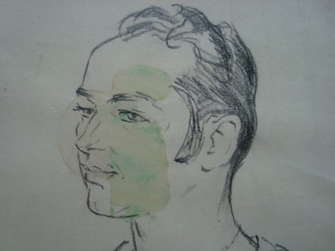 Enkelte pletter samt stor plet i ansigtet.