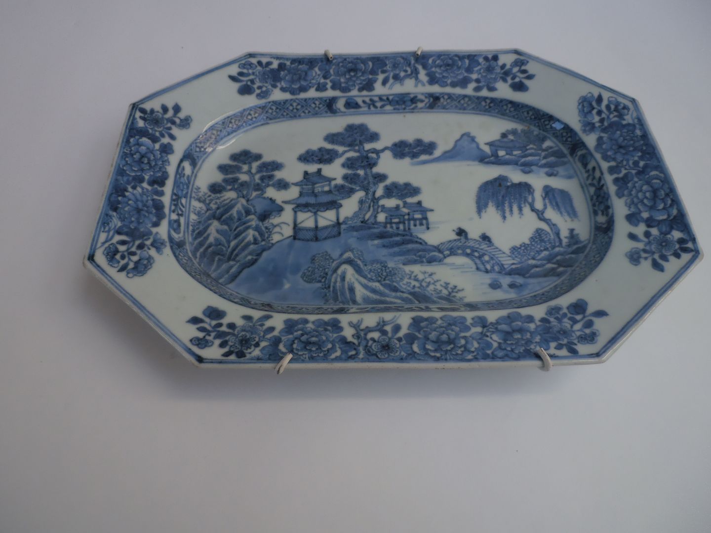 1 blåt fad af kinesisk porcelæn, Kina ca. 1840.