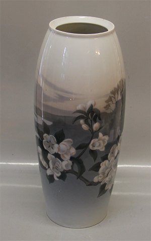 Bing and Grondahl B&G 4126-19 Vase with church and fruitflower 40.5 cm 2nd .Signed KK Marked with the three Royal Towers of Copenhagen. Bing & Groendahl In mint and nice condition