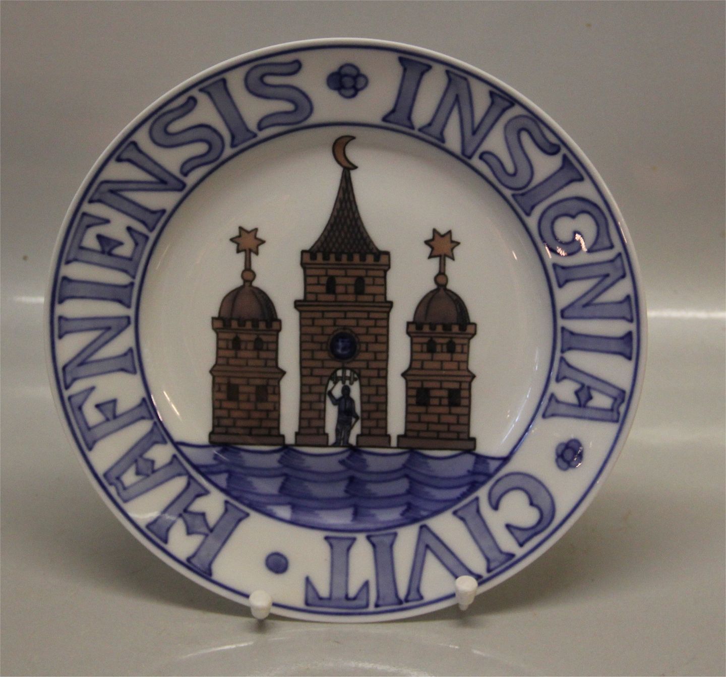 Bing & Grøndahl Tre tårne Københavns CITVIT HAFNIENSIS INSIGNIA 24 cm By-platte med byvåben en serie skabt af Effie Hergermann-Lindencrone. I fin og hel stand. Byvåbenplatte, Våbenskjold eller byplatte