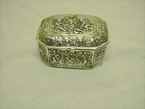 Flot sølv dåse med Engle på låg og indvendig forgyldt