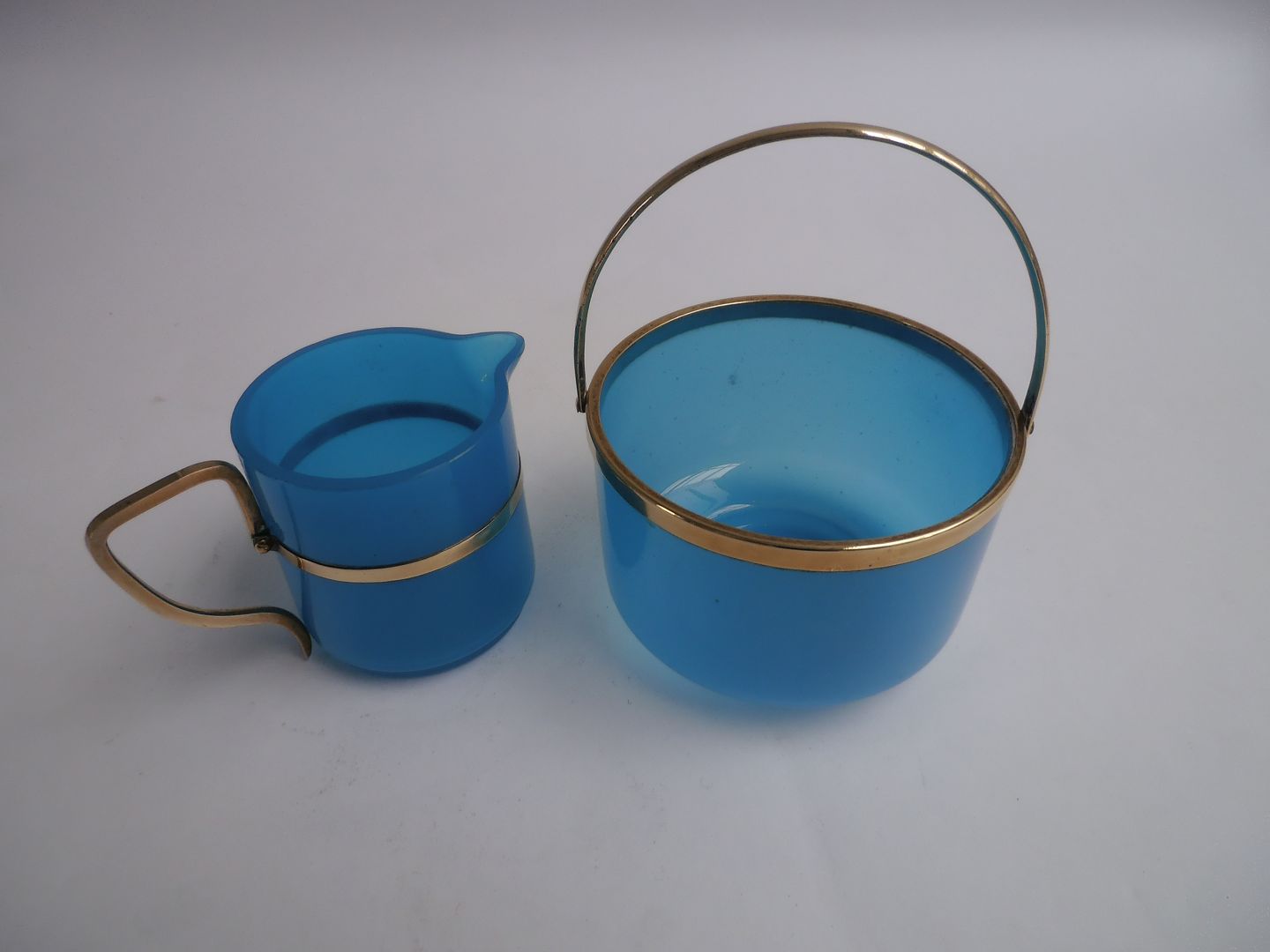 Blåt opaline sukker & fløde glas, Frankrig ca. 1920.