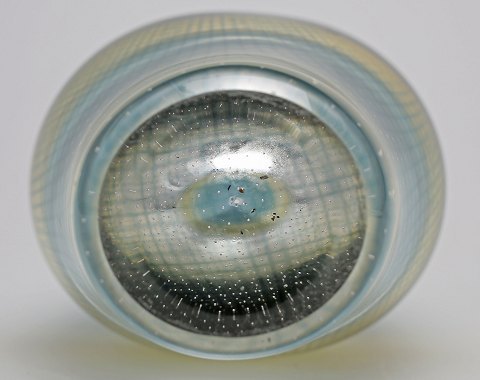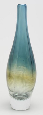 STOR Sven Palmqvist, Orrefors KRAKA kunstglasvase, netmønster i blåt og gulgrønt. Signeret ORREFORS, pu 3364, Sven Palmqvist.