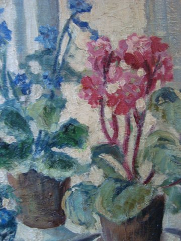Maleri - Aksel Lundgreen - Potteplanter i vindue.