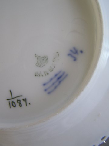 RC 1087 Musselmalet Helblonde Kagetallerken 1. sort.