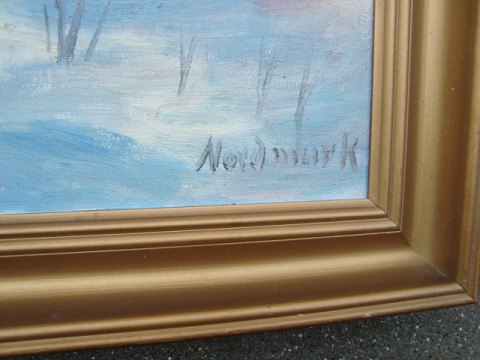 Maleri af ubekendt kunstner - Skovparti, vinter ved Hønefoss, Norge.
