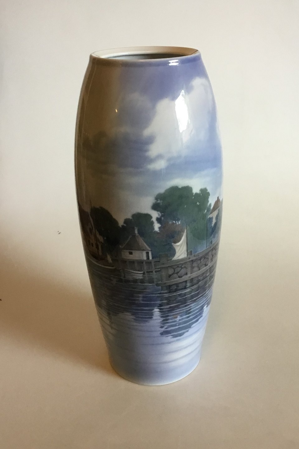 Bing & Grondahl Unika Vase by Elias Pedersen with harbour motif. Measures 39,5 cm / 15 35/64 in. and is in good condition.