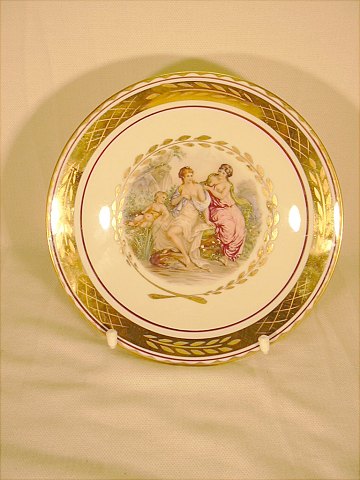 Kongeligt Porcelæn. Tallerken med romantisk motiv, guldkant Ø: 20 cm.