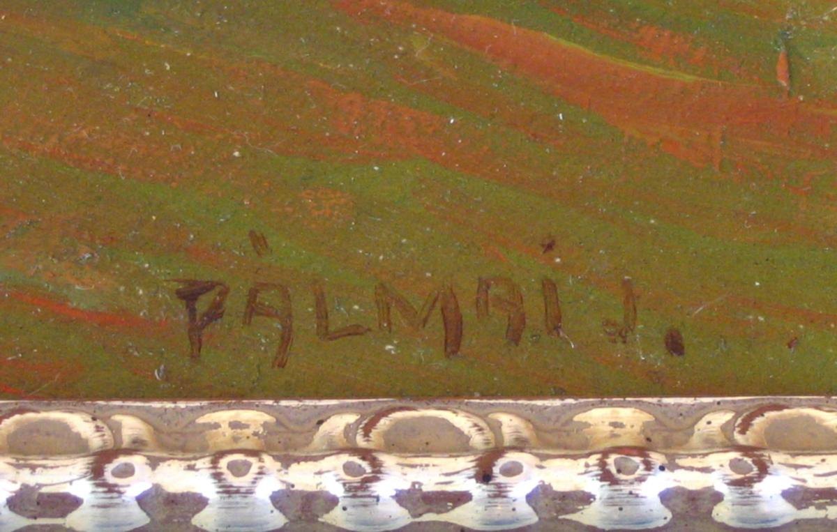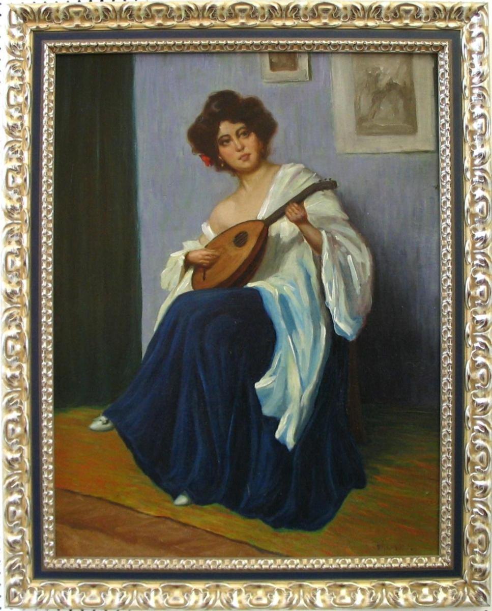 Palmai (19th / 20th century.) Hungary: A mandolin playing woman. Oil on cardboard. Sign .: Palmai.55 x 43 cm. With newer frame. Perfect condition!