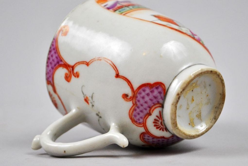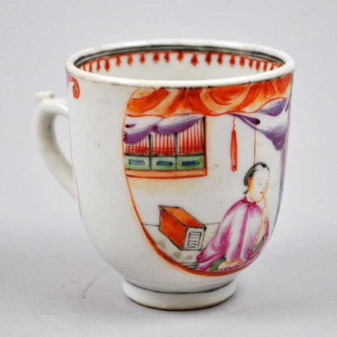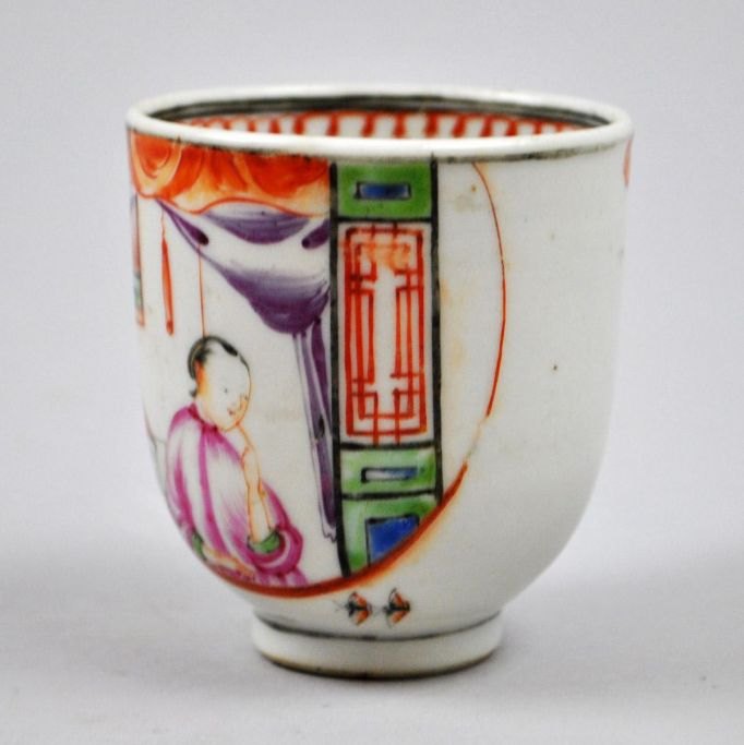 Kinesisk kop i porcelæn, med figurscener i mandarinporcelæn, Kina Qianlong (1736 - 1795). Med hank, H.: 7 cm. Med hårrevne.