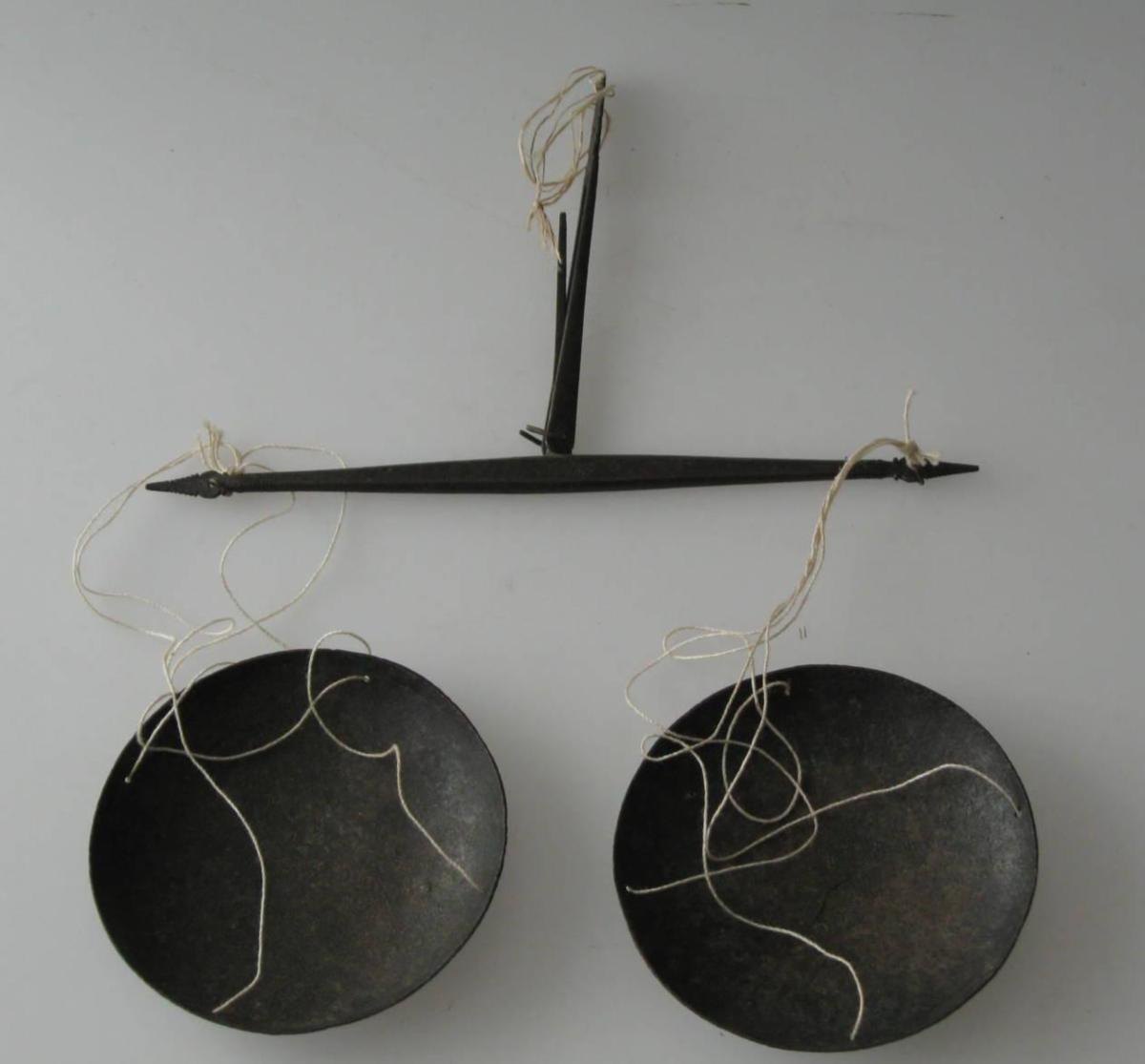 Antik guldvægt, 19. årh. I kobber. Dia. skåle.: 8 cm.