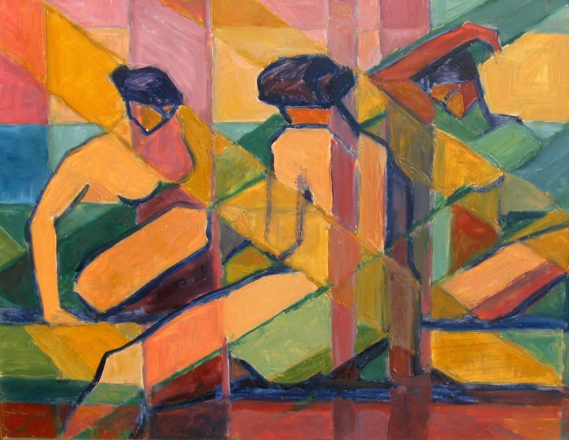 Gaborit, Leon (1874 -) Frankrig: Nøgne kvinder. Olie på plade. På bagsiden anført: udført 4-5-7 septembre 1964. Leon Gaboret. 50 x 65 cm. Med nyere forgyldt ramme.