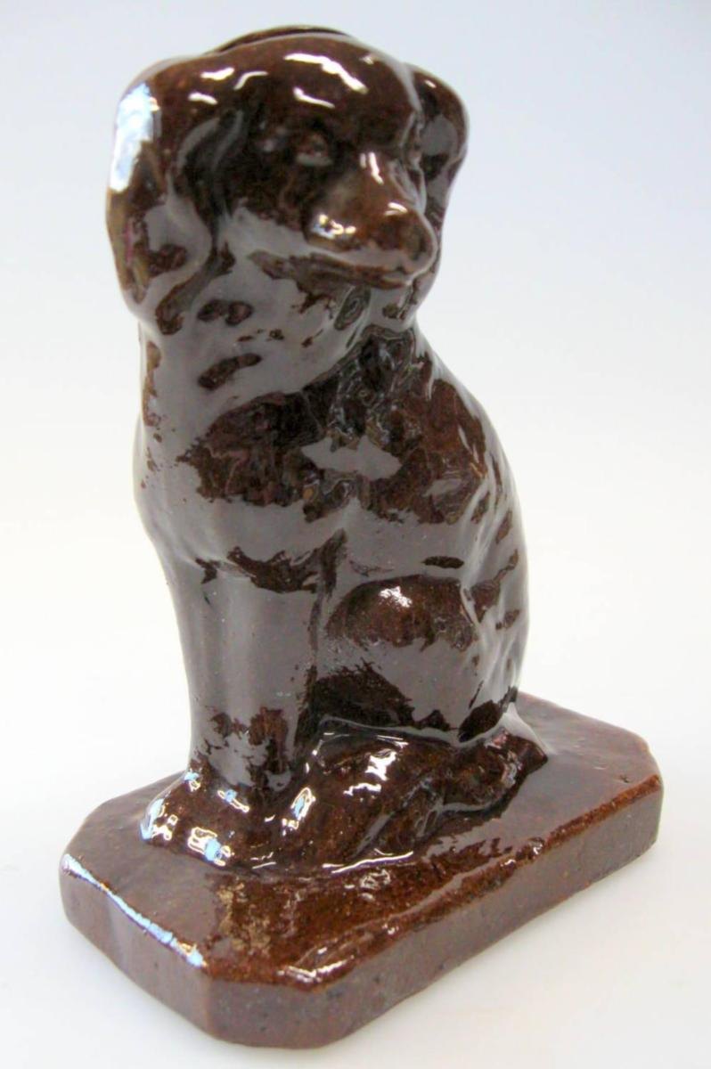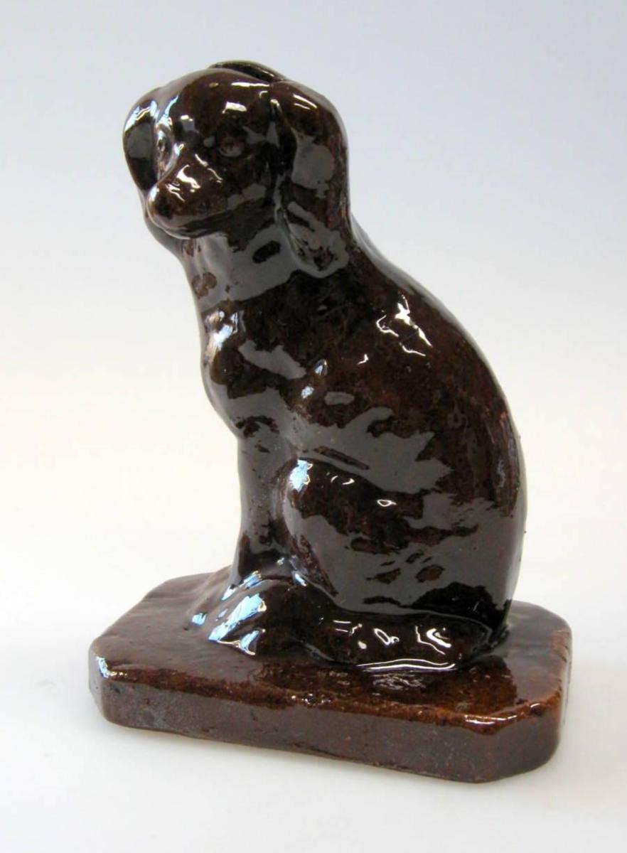 Money Box in clay, Bornhom, 19th century. A sitting poodle. Brow glaze. H .: 15 cm.