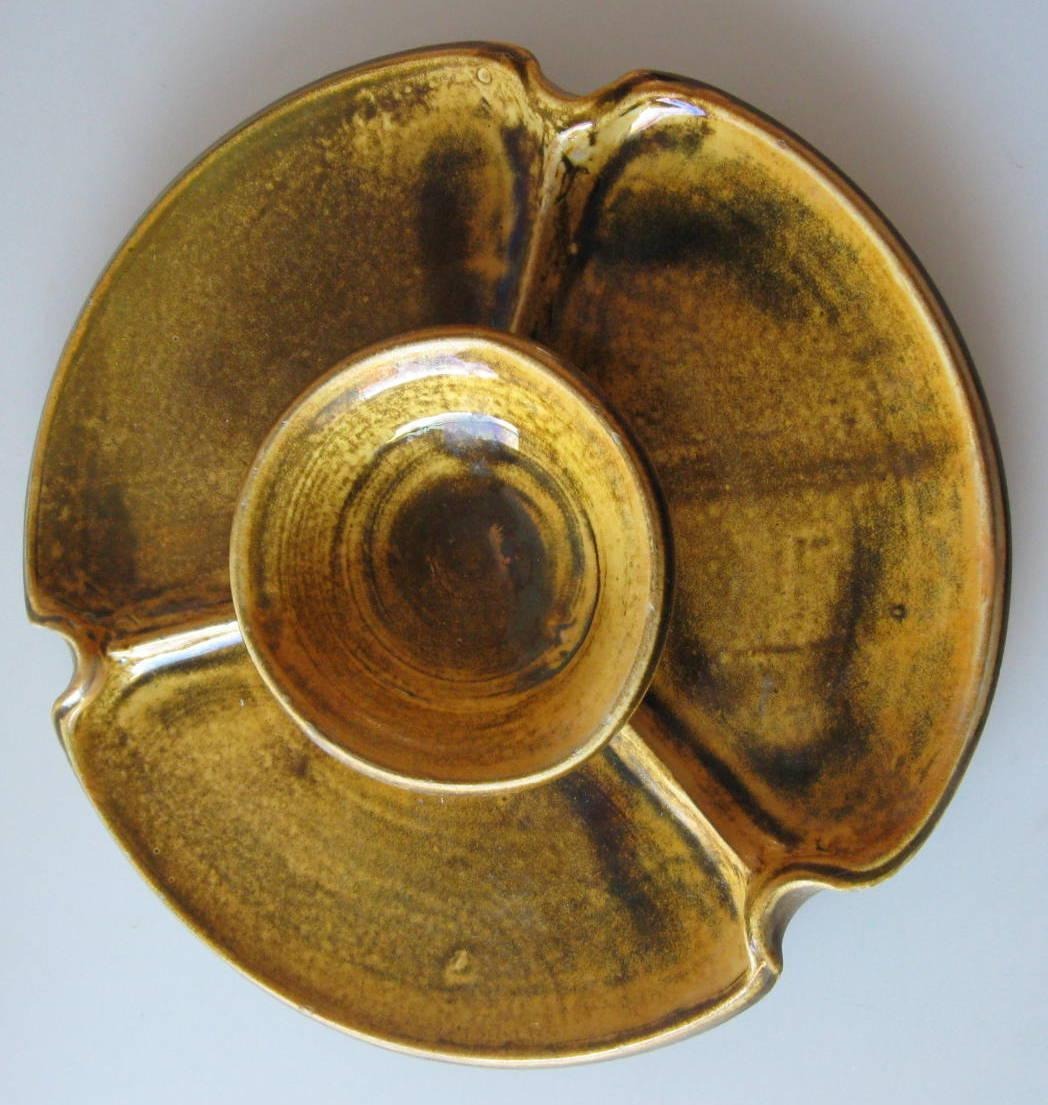 Herman A,. Kähler fiskefad, cadnium gult. o. 1920 - 1930. Dia.: 26 cm. Signeret.: HAK Danmark