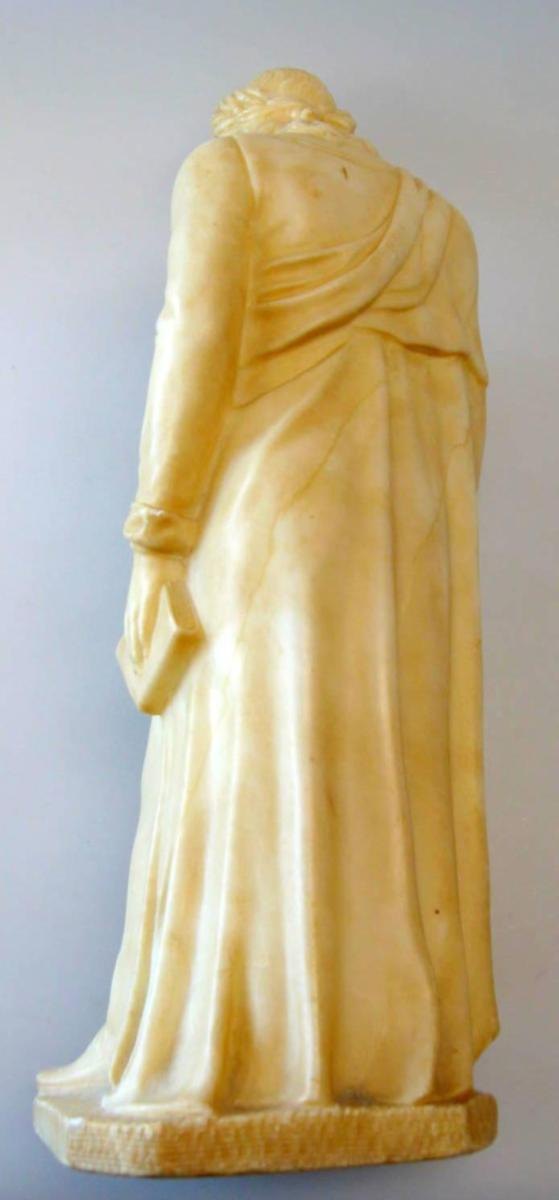 Ubekendt kunstner (19. årh.) En poet - antagelig Lord Byron. Iført klassisk dragt med krans. Stående med en bog. H.: 37,5 cm. Skulptur i alabast.