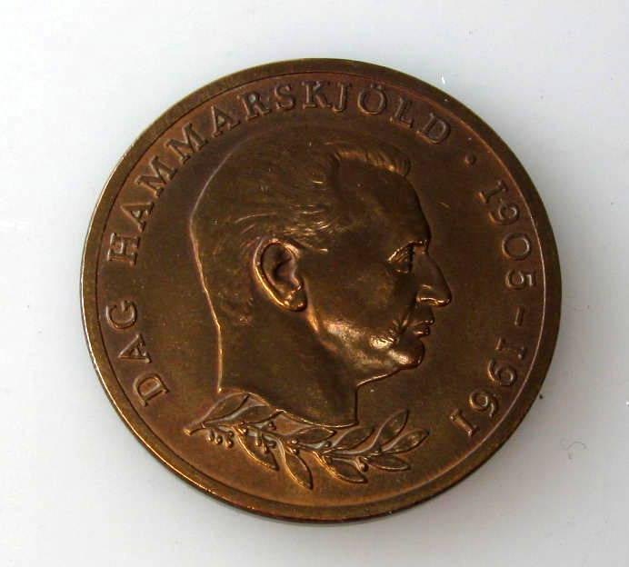 Danmark U-landshjælp 1962. Medalje i bronze. Dia.: 3,8 cm. Med Dag Hammerskjölds profil (1905 - 1961)