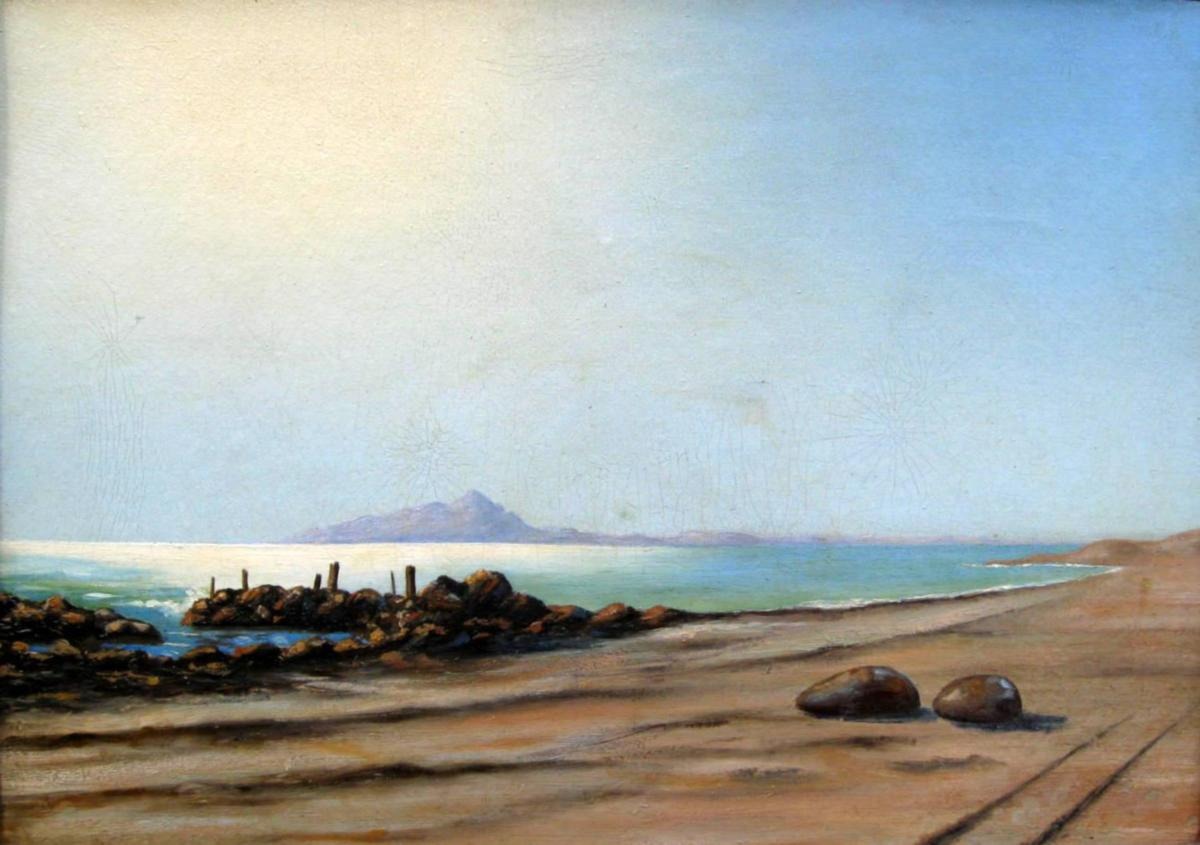 Eckardt, Christian (1832 - 1914) Danmark.: Marine. Parti fra Italien. Skitse. Olie på malerplade. 28 x 39 cm. Signeret.: C. Eckardt.