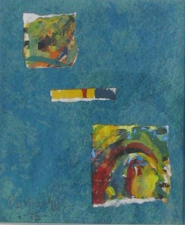Nash, Rama King (1976 - 2018 ) Danmark: Komposition. Akvarel. Signeret.: Rama KN - 96. 18 x 15 cm. Med guldramme.