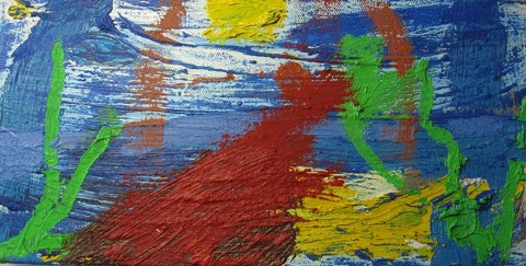 Gislason, Jon (1955 - ) Danmark: Komposition. Acryl på lærred. 15 x 30 cm. Signeret på bagsiden: Jon Gislason 2010. Uden ramme.