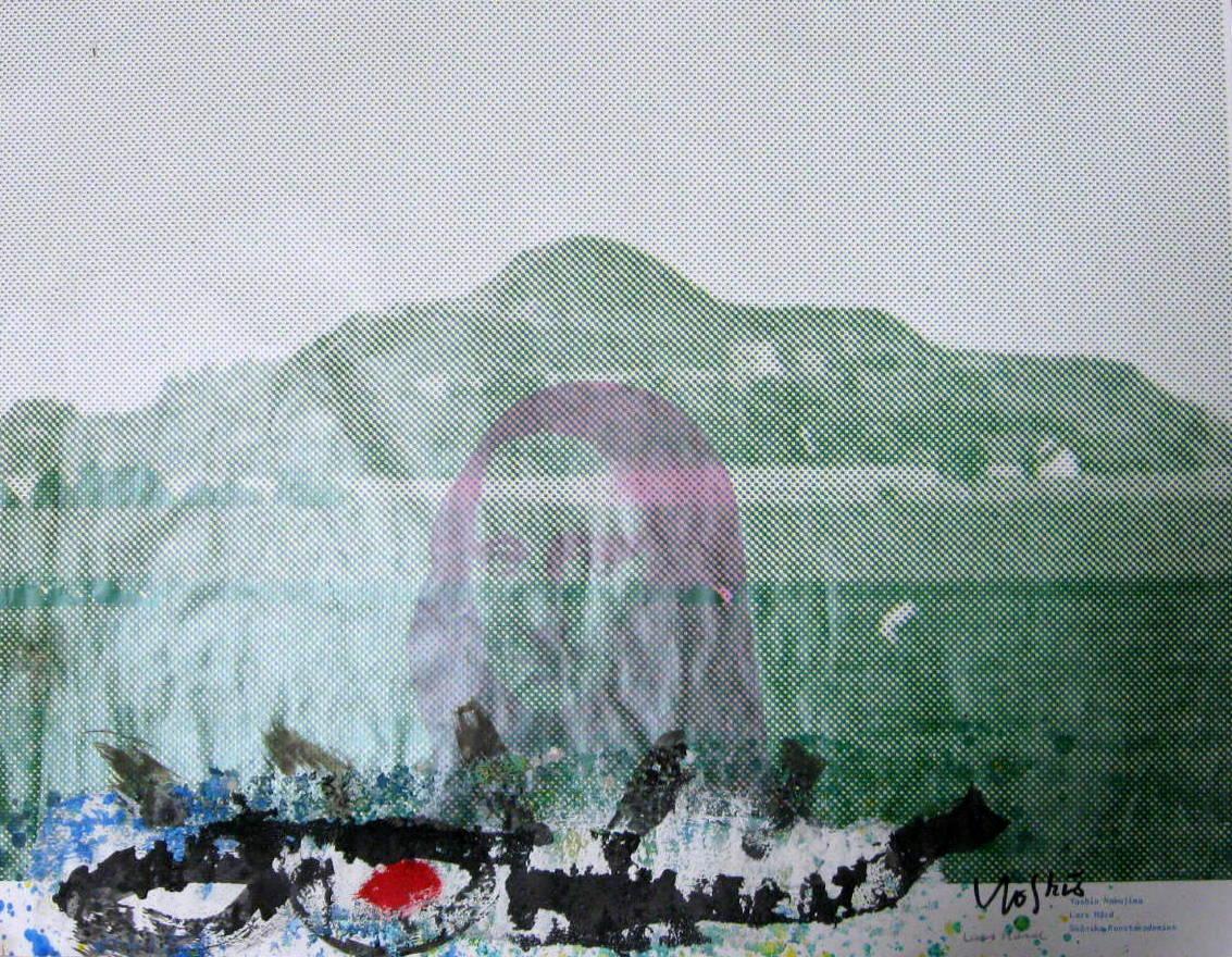 Nakajima, Yoshio/Lars Hård, Sverige: Mona Lisa. Bemalet grafik. 56 x 71 cm. Signeret.: Lars Hård og Yoshio Nakajima.