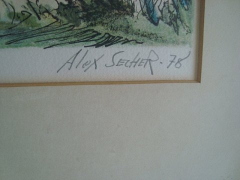 Alex Secher var uddannet fra Teknisk skole i Kolding 1927-33 og derefter gennemgik han Statens Tegnelærer kursus 1940-41. Secher var gift første gang med malerinden Inga Secher (1913-67).