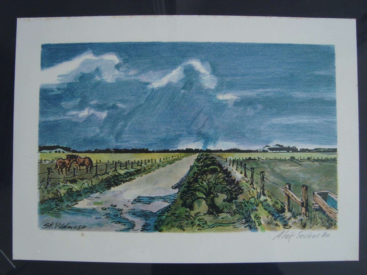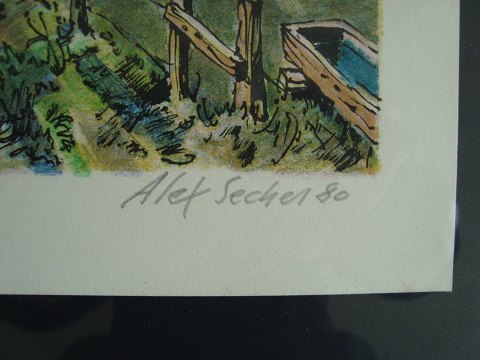 Alex Secher var uddannet fra Teknisk skole i Kolding 1927-33 og derefter gennemgik han Statens Tegnelærer kursus 1940-41. Secher var gift første gang med malerinden Inga Secher (1913-67).