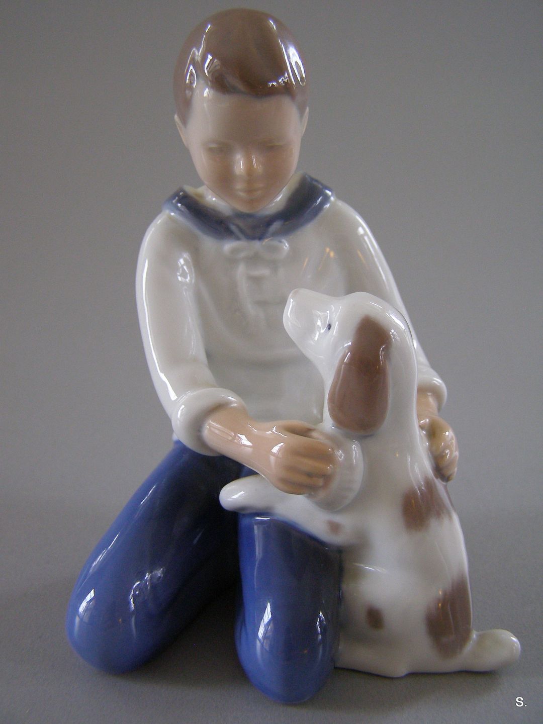 B&G 2334 Dreng med hund 1. sort. H: 13 cm.