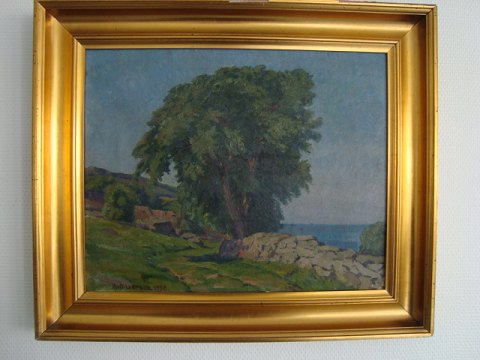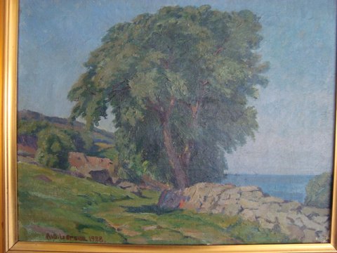 Maleri af Albert Larsen 1928 - Kystparti fra Bornholm.