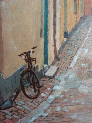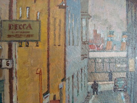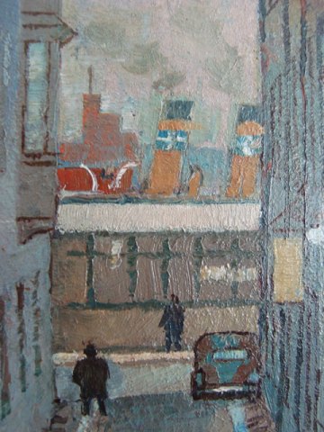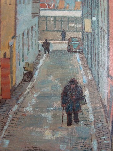 Maleri af Hjalmar Strååt 1950 - Parti fra Ferkens Gränd, Gamla Stan i Stockholm.