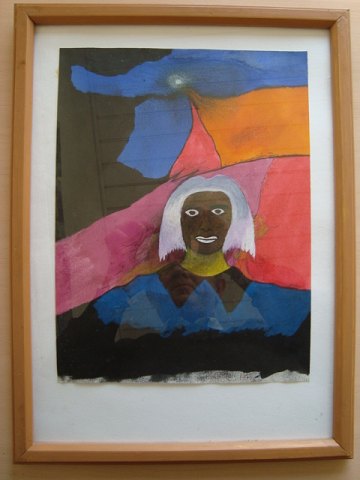 Akvarel af Poul Esting - Pige i landskab 1978.