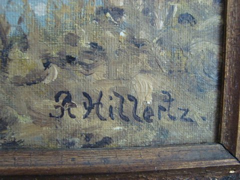 Maleri af A. Hillertz - Solen bryder igennem ved sø med ænder.