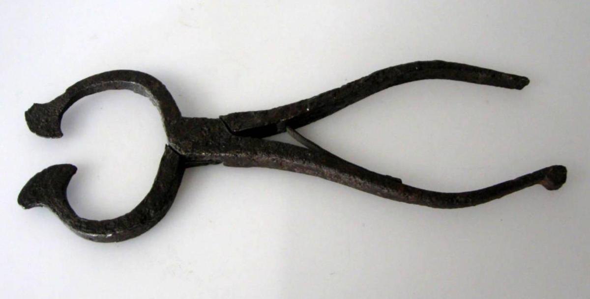 Antik sukkertang i jern, 18. årh. Danmark. Med fjeder. L.: 20,5 cm.