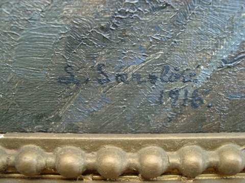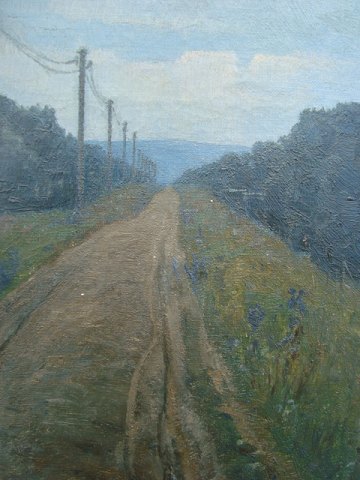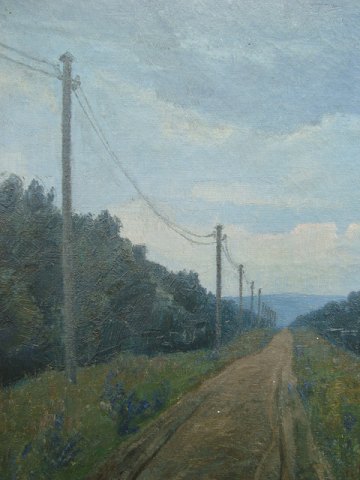 Maleri af Frederik Larsen-Særsløv. Landevej med telefonmaster 1916.