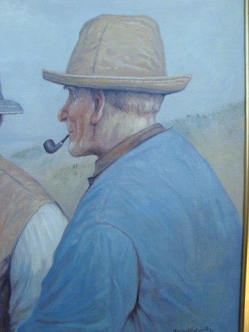 2 fiskere i samtale på stranden.