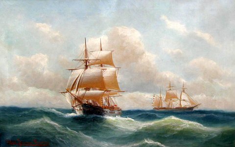Jensen, Alfred (1859 - 1935) Tyskland: Marien med to sejlskibe.