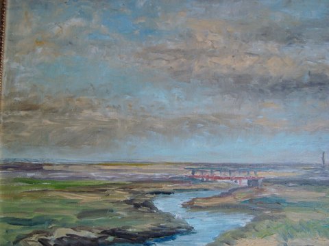 Maleri - Robert Nielsen - Ådal med dæmning.