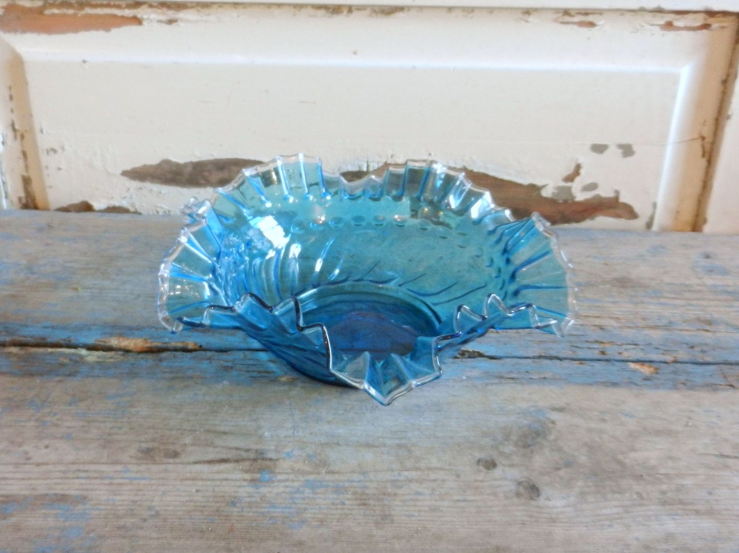 Visitkortskål i søblåt glas fra Fyens glasværk 1896.