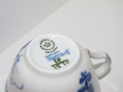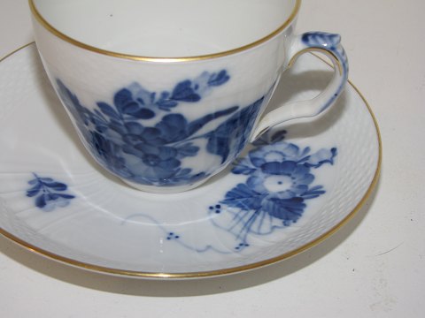 Royal Copenhagen Blå Blomst Svejfet med guldkant, kaffekop med tilhørende underkop.
