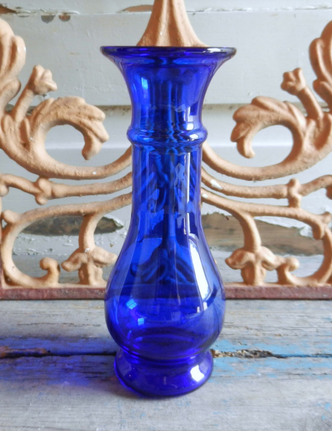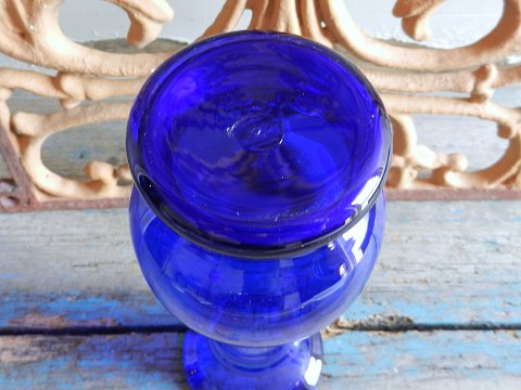 Smukt blåt hyacintglas, riglen er ikke pålagt men blæst med i form.