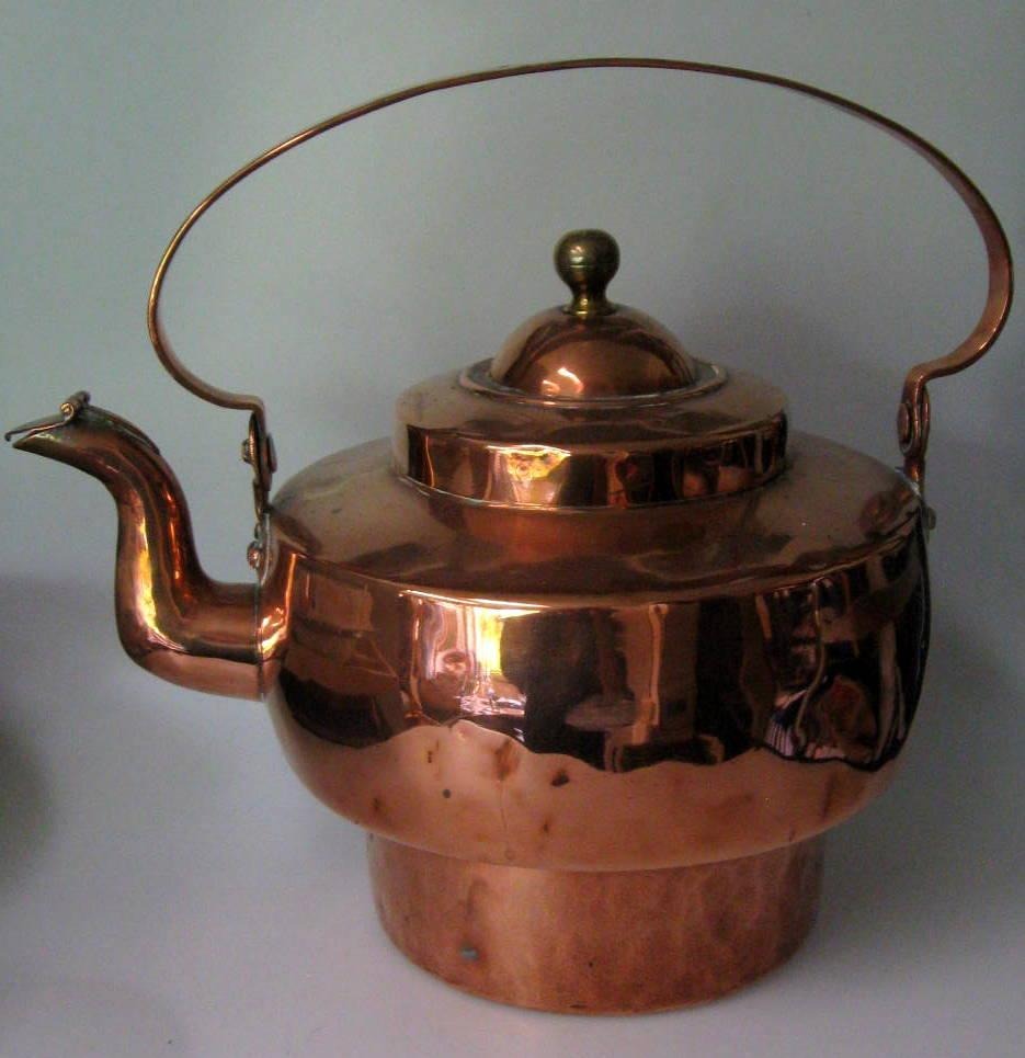 Antik dansk kobber vand keddel med sæk og hank. 19., årh. Højde: 26 cm. Højde med hank: 30 cm. Uden synlige mesterstempler. Med stemplet no. 7 på hank.