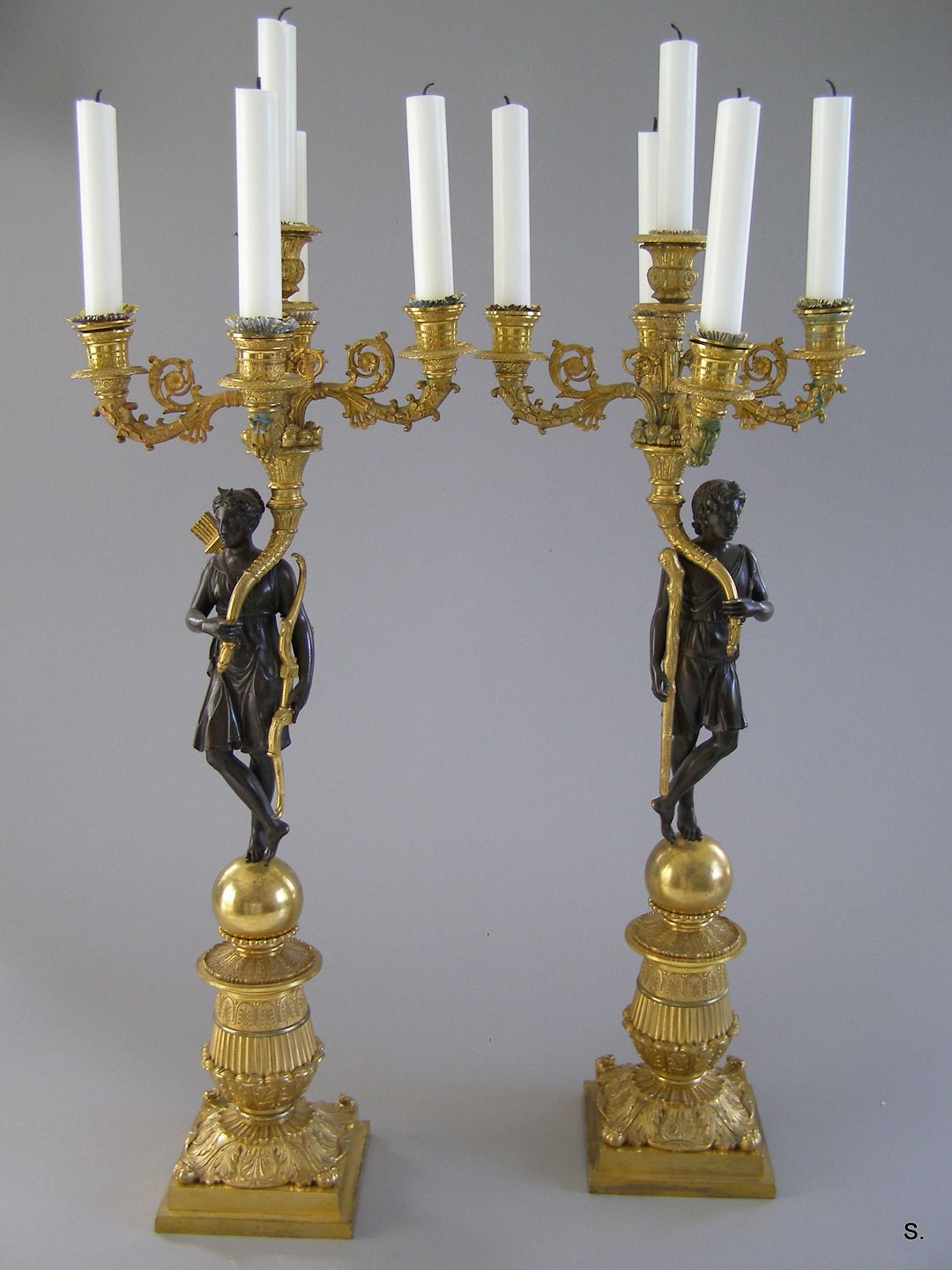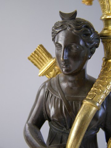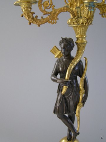 Bronzekandelabre forgyldt og delvist patineret, Diana og Herkules